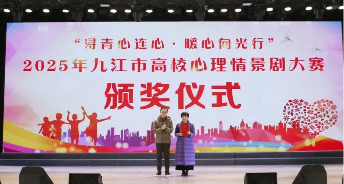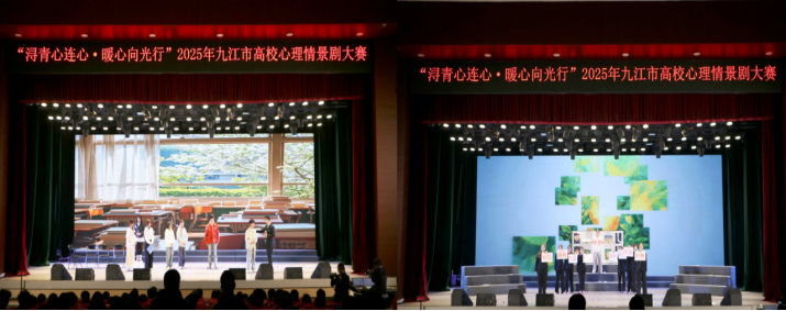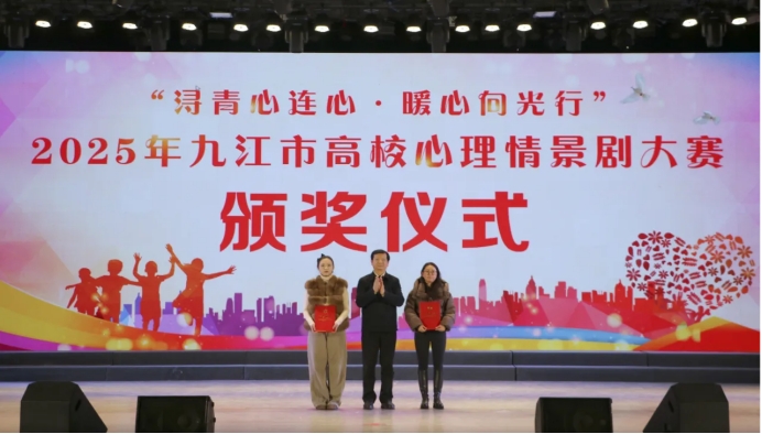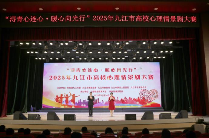 12月26日下午,由共青团九江市委、九江市委政法委、九江市教育局、九江市第五人民医院、九江市学生联合会联合主办,我校与濂溪区团委共同承办的“浔青心连心·暖心向光行”2025年九江市高校心理情景剧大赛,在我校十里校区大礼堂圆满落下帷幕,大赛以沉浸式心理演绎与艺术表演的深度融合,为全市高校师生献上了一场震撼心灵的心理健康教育盛宴,600余名师生代表到场观摩。