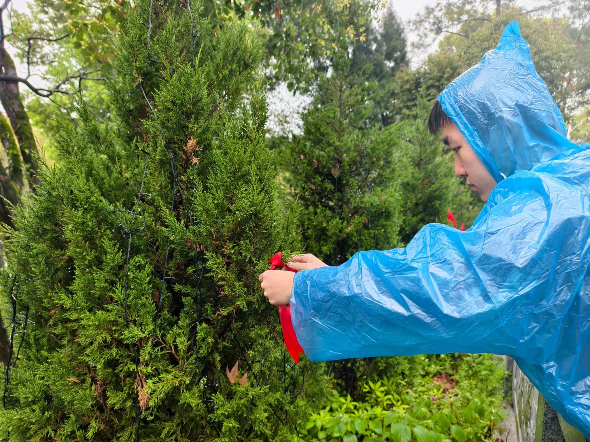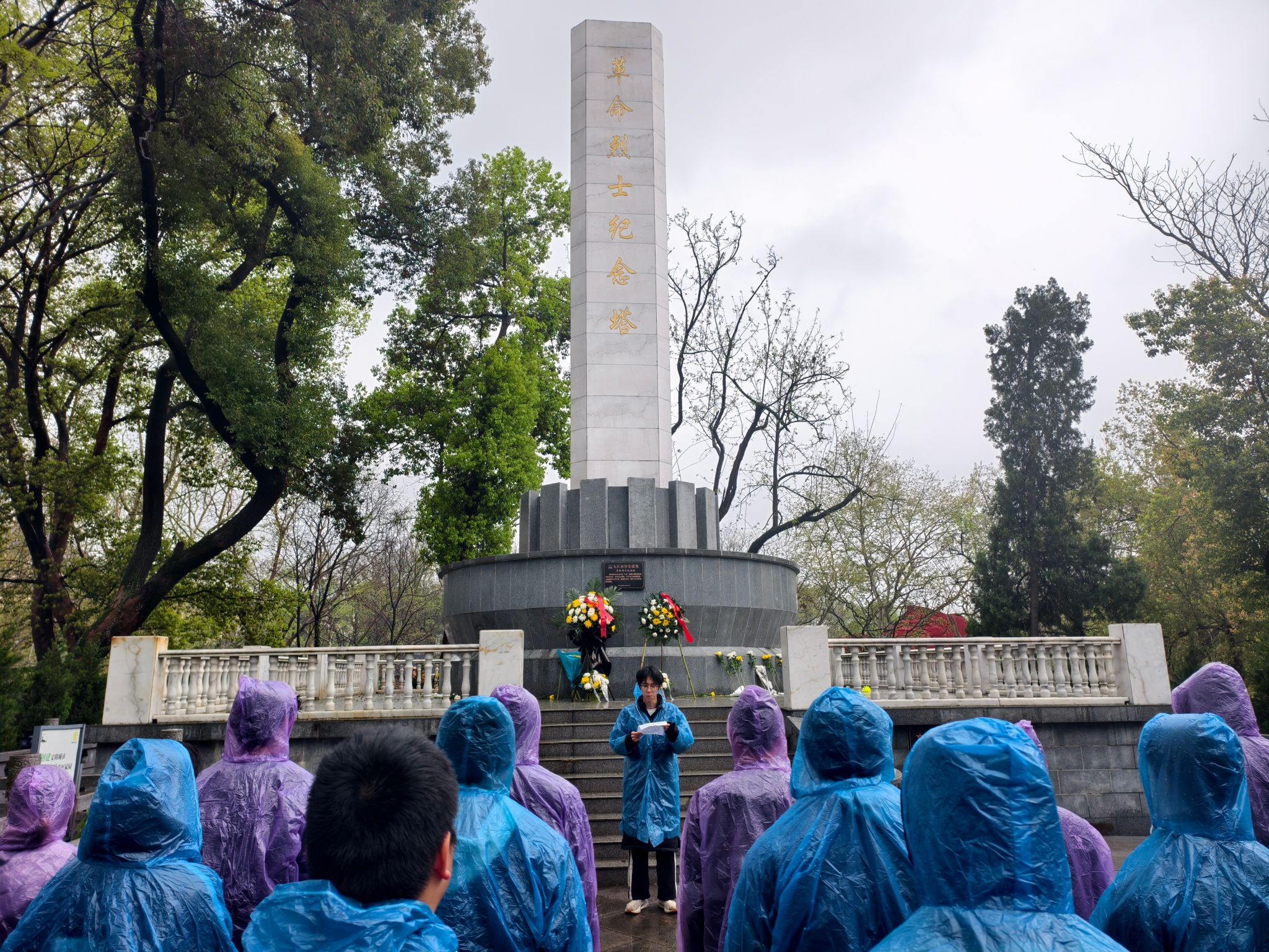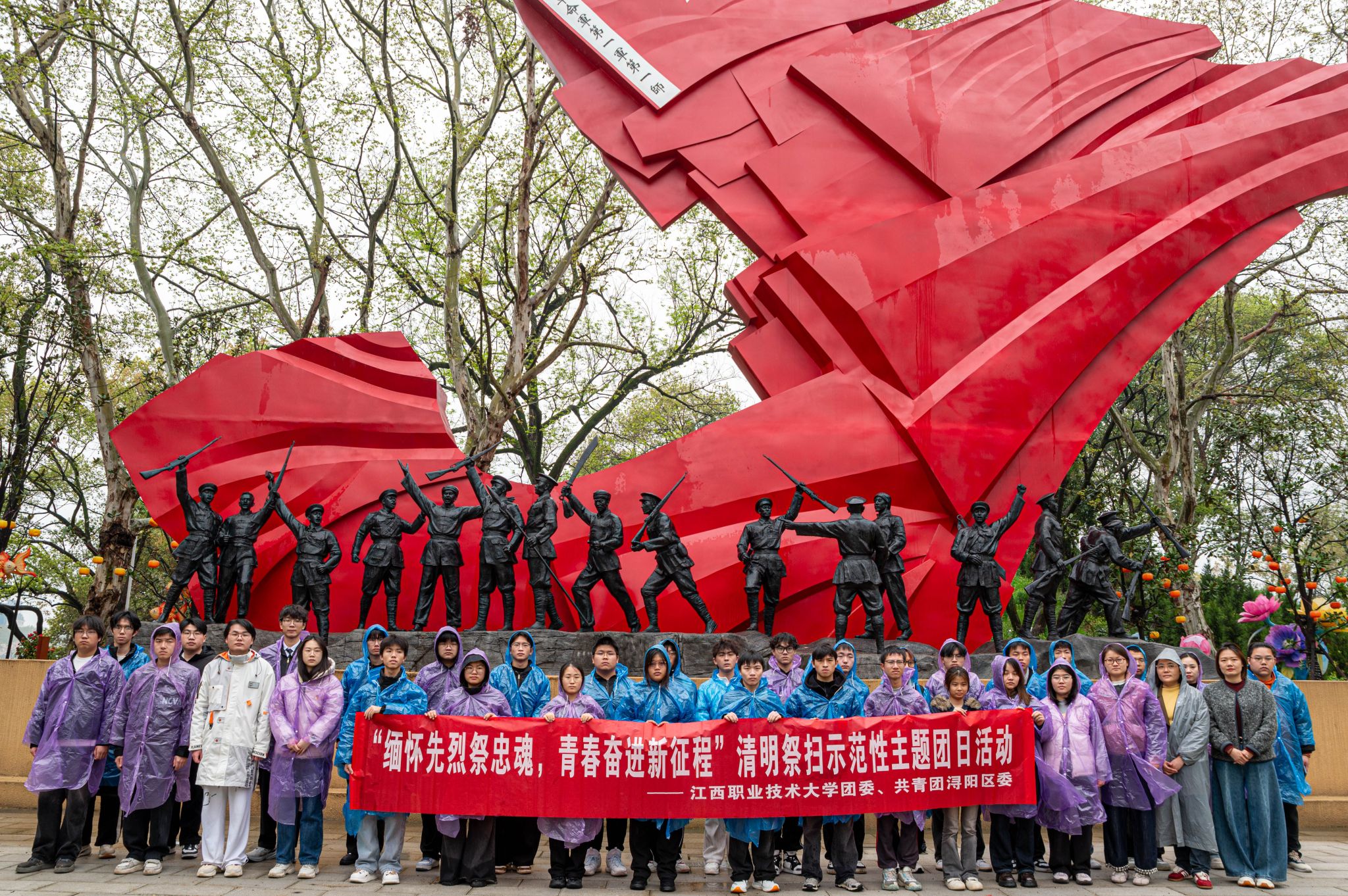 线下,师生团干代表前往甘棠公园烈士纪念塔开展祭扫活动。祭扫现场庄严肃穆,青松翠柏环绕,烈士纪念塔巍峨矗立,全体师生列队肃立、集体默哀,向革命先烈致以最崇高的敬意。默哀结束后,大家依次上前,向烈士纪念塔敬献鲜花,朵朵鲜花承载着对英烈的缅怀与敬仰......电气工程学院电气本2402班滕安杰同学在发言中深情回顾革命先烈为国家独立、民族解放抛头颅、洒热血的峥嵘岁月,表达了新时代青年继承先烈遗志、勇担时代使命的坚定决心;机械工程学院机自本2503杨金煊同学带领全体团员面向团旗,举起右拳、庄严宣誓,铿锵有力的誓言回荡在纪念塔上空,彰显了江职大学子以青春之我担时代之责的信念与担当。活动现场,师生们还亲手悬挂祈福带,“继承先辈遗志,技能报国为民”“青春心向党,奋进新征程”等字样,既是对先烈的告慰,也是对自身的奋斗承诺。